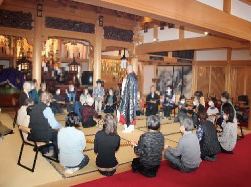 除夜の鐘が鳴り響く中、午前0時より本堂にて新年を無事迎えた悦びと、国家の繁栄、世界の平和を祈り、皆様のご健勝を祈願致します。